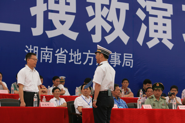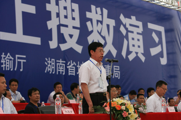 省交通運(yùn)輸廳廳長吳亞中(圖左)擔(dān)任現(xiàn)場(chǎng)總指揮,省地方海事局局長陳健強(qiáng)(圖右)擔(dān)任現(xiàn)場(chǎng)執(zhí)行總指揮。 此次演習(xí)由湖南省人民政府主辦、湖南省交通運(yùn)輸廳、湖南省地方海事局承辦,副省長韓永文擔(dān)任演習(xí)總指揮。 演習(xí)于當(dāng)日上午9時(shí)展開。演習(xí)模擬一艘普貨船1號(hào)從湘江長沙鑫宇公司碼頭出發(fā)下行,航行至杜甫江閣水域下游花炮平臺(tái)正對(duì)水域時(shí),與客渡船1號(hào)(載客30人、船員2人)發(fā)生碰撞,客渡船1號(hào)2名旅客受傷、10名乘客落水,船舶進(jìn)水失控,面臨沉沒危險(xiǎn)。普貨船1號(hào)避讓落水人員時(shí)又與航經(jīng)此水域的油船1號(hào)(裝載柴油500噸)發(fā)生碰撞,致油船1號(hào)油艙破損,在自救過程中發(fā)生火災(zāi)、爆炸,并發(fā)生柴油泄漏。 經(jīng)湖南省水上搜救中心組織、指揮、協(xié)調(diào)專業(yè)和社會(huì)力量全力救助,落水人員全部獲救,受傷人員緊急轉(zhuǎn)送到市區(qū)醫(yī)院,遇險(xiǎn)乘客安全轉(zhuǎn)移;遇險(xiǎn)船舶拖至安全水域靠泊。油船大火被撲滅,溢油得到控制,油污得到有效清除。演習(xí)歷時(shí)90分鐘,取得圓滿成功。 據(jù)悉,我省共有航道里程11968公里,居全國第三;渡口6074座,渡船4203艘,有船水庫145座、2700平方公里,均居全國第一。2009年全省完成水路貨運(yùn)量1.18億噸、貨物周轉(zhuǎn)量255億噸公里,與“十五”末的2005年相比,分別增長156%、34%,我省水路貨運(yùn)量約占全省社會(huì)運(yùn)輸總量的10%,水路貨物周轉(zhuǎn)量占全社會(huì)總量的13%。水路運(yùn)輸快速增長,確保水運(yùn)安全,提高全省水上應(yīng)急搜救能力日益重要。此次演習(xí)不僅檢驗(yàn)了《湖南省水上搜救應(yīng)急預(yù)案》的實(shí)用性和可操作性,以及多部門聯(lián)合應(yīng)急救援機(jī)制,而且積累了水上人命救助、船舶消防、水域防污染等方面的實(shí)戰(zhàn)經(jīng)驗(yàn),提高了我省水上應(yīng)急搜救的組織、協(xié)調(diào)和指揮能力。 韓永文在演習(xí)順利結(jié)束后指出,在水運(yùn)經(jīng)濟(jì)快速發(fā)展的今天,我們必須高度重視水上交通安全和水運(yùn)環(huán)境保護(hù)工作,要時(shí)刻警醒、時(shí)刻準(zhǔn)備,要全面提高監(jiān)管救助和應(yīng)急水平,及時(shí)有效地應(yīng)對(duì)水上突發(fā)應(yīng)急事件,切實(shí)保障人民生命財(cái)產(chǎn)安全。全省各地各有關(guān)部門、單位要以此次演習(xí)為契機(jī),認(rèn)真總結(jié)經(jīng)驗(yàn),從“保障人民生命財(cái)產(chǎn)安全”的高度,把水上應(yīng)急管理工作擺到更加突出的位置,用更多的精力,采取更強(qiáng)的措施,切實(shí)做好應(yīng)對(duì)水上突發(fā)事件工作,為維護(hù)公共安全、構(gòu)建和諧社會(huì)提供有力保障。