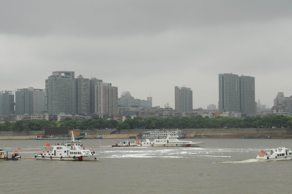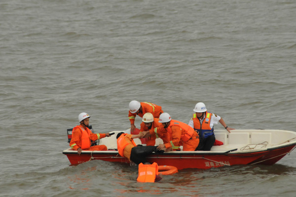 | 8月26日上午,以“關(guān)注航行安全、保護(hù)水域清潔、共建平安湖南”為主題的“2010年湘江水域水上搜救演習(xí)”在湘江長沙杜甫江閣水域舉行。25艘船舶、近300人參加了人命救助、船舶救援、船舶消防滅火、水域油污染控制等搜救演習(xí)行動(dòng)。這是我省首次舉行大型內(nèi)河水上搜救演習(xí)。