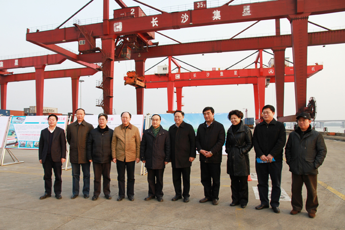 210日下午,交通運(yùn)輸部黨組副書(shū)記、副部長(zhǎng)翁孟勇一行,在省交通運(yùn)輸廳黨組書(shū)記、廳長(zhǎng)賀仁雨,長(zhǎng)沙市委副書(shū)記、市長(zhǎng)張劍飛,市政府副市長(zhǎng)何寄華,市政府秘書(shū)長(zhǎng)、辦公廳主任唐志浩,市政府副秘書(shū)長(zhǎng)嚴(yán)鳳枝,市交通運(yùn)輸局黨委書(shū)記朱東鐵,局長(zhǎng)劉明理,副局長(zhǎng)姚仲權(quán)、陳湘,開(kāi)福區(qū)區(qū)委書(shū)記張迎春,區(qū)長(zhǎng)凌勤杰等領(lǐng)導(dǎo)陪同下,來(lái)到長(zhǎng)沙新港考察調(diào)研。湖南長(zhǎng)沙新港有限責(zé)任公司董事長(zhǎng)、三期工程建設(shè)指揮部指揮長(zhǎng)石道國(guó),董事、常務(wù)副總經(jīng)理唐忠良,董事趙赤書(shū),副總經(jīng)理張韜,長(zhǎng)沙集星集裝箱碼頭有限公司副總經(jīng)理辛華,總經(jīng)理助理周勇接待。