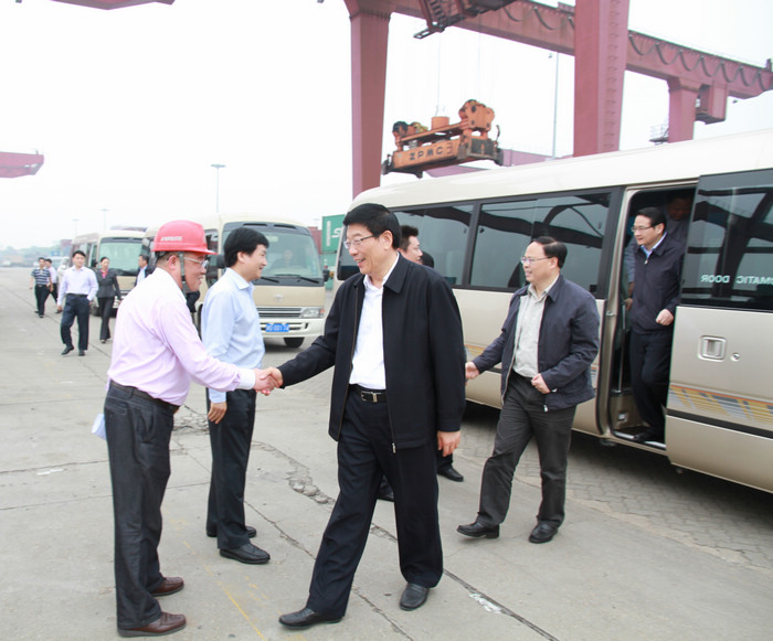 5月3日下午,湖南省委書記徐守盛,省委常委、省委秘書長易煉紅,及省信訪局、省發(fā)改委、省經(jīng)信委、省民政廳、省公安廳、省政府辦公廳等領(lǐng)導(dǎo)一行,在長沙市委副書記、市長張劍飛,市委副書記張迎龍,市委常委、市委秘書長李軍,開福區(qū)區(qū)委書記李蔚,區(qū)委副書記、區(qū)長廖建華,金霞開發(fā)區(qū)黨工委書記張毅,黨工委副書記、管委會(huì)主任袁政國等領(lǐng)導(dǎo)的陪同下來長沙新港考察調(diào)研。湖南長沙新港有限責(zé)任公司董事長、總經(jīng)理唐忠良,董事、財(cái)務(wù)總監(jiān)趙赤書,董事、副總經(jīng)理張韜,董事、長沙集星集裝箱碼頭有限公司副總經(jīng)理辛華等公司領(lǐng)導(dǎo)接待。