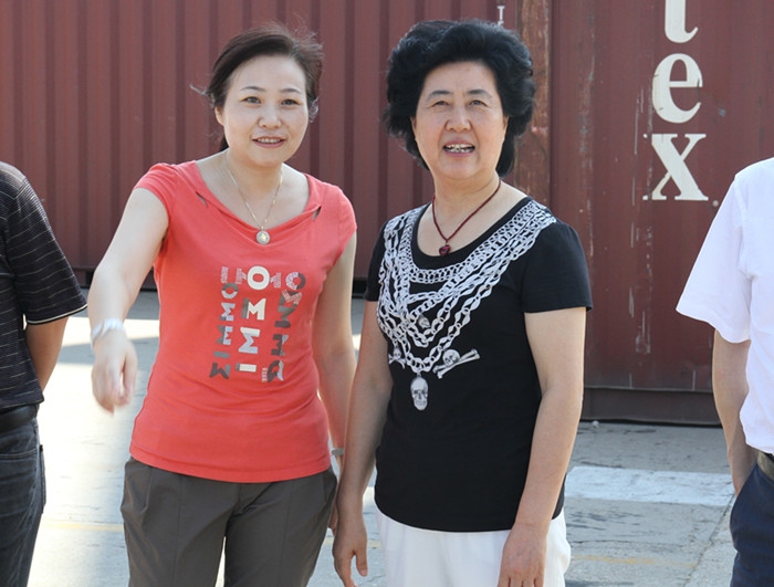 圖為公司董事、財(cái)務(wù)總監(jiān)趙赤書(左一)在給長(zhǎng)沙市政協(xié)黨組副書記、副主席鐘新蓮(右一)介紹港口建設(shè)的基本情況。