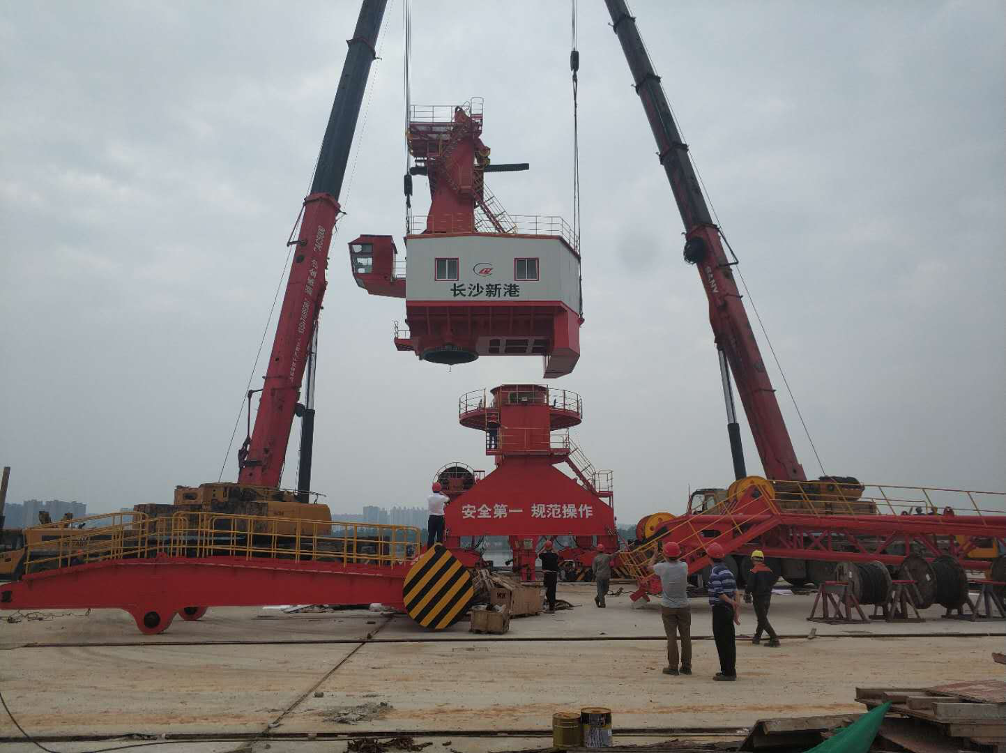 南片生產(chǎn)添助力 門(mén)座式起重機(jī)順利安裝 長(zhǎng)沙港霞凝港區(qū)三期工程上游新建2000噸級(jí)(兼顧3000噸級(jí))多用途泊位2個(gè),滾裝泊位1個(gè)。滾裝泊位目前已完成土建實(shí)體、混凝土道路施工,配套鋼引橋制作安裝、躉船制安錨定及兩者的連接工作,已經(jīng)具備投產(chǎn)條件;多用途泊位主體工程已基本完成,正在進(jìn)行附屬工程掃尾工作。 長(zhǎng)沙港霞凝港區(qū)三期工程上游多用途泊位計(jì)劃配置2臺(tái)門(mén)座式起重機(jī);3月上旬,湖南中鐵五新重工有限公司港機(jī)安裝隊(duì)開(kāi)始安裝,經(jīng)過(guò)一個(gè)多月不懈努力,大車(chē)行走結(jié)構(gòu)、轉(zhuǎn)臺(tái)、臂架、圓通門(mén)架等都已現(xiàn)場(chǎng)組裝完成。5月4日、6日,25t-25m、45t-25m門(mén)座式起重機(jī)順利完成轉(zhuǎn)臺(tái)及臂架等上部結(jié)構(gòu)的合攏,主體結(jié)構(gòu)一次性吊裝成功。在設(shè)備構(gòu)件吊裝前,新港公司組織專(zhuān)家對(duì)吊裝方案的安全性進(jìn)行了專(zhuān)家論證,確保框架碼頭承受荷載不大于設(shè)計(jì)荷載,以保證機(jī)械設(shè)備吊裝安全。